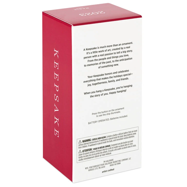 - Key Features: Press the button on the Magic Light ornament to see the ship illuminate.