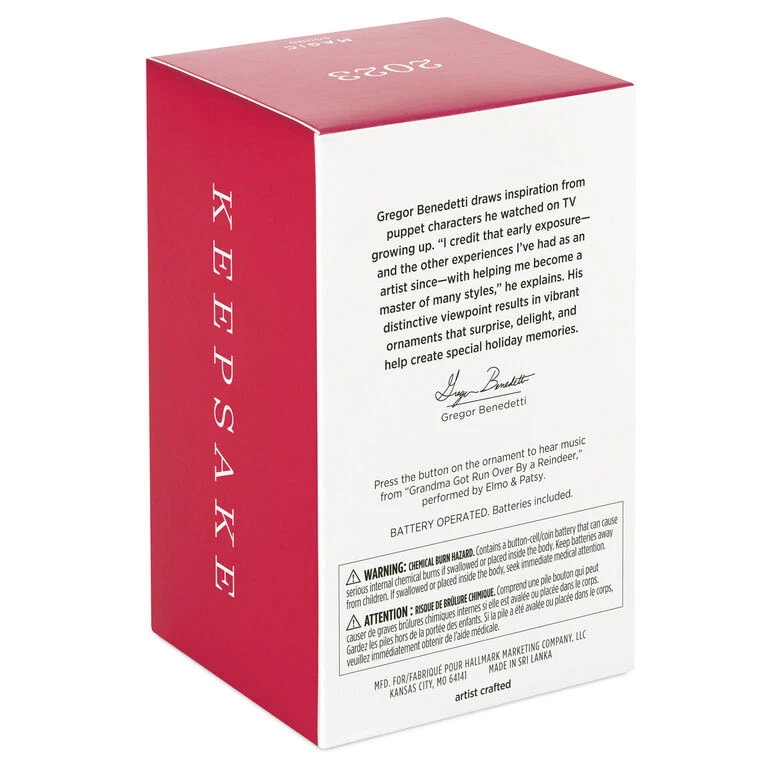 - Key Features: Press the button on the Magic Sound ornament to hear music from “Grandma Got Run Over By a Reindeer” performed by Dr. Elmo.