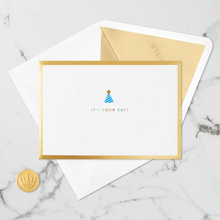 - Includes one card and one lined envelope with a Gold Crown seal. Envelope color may vary.