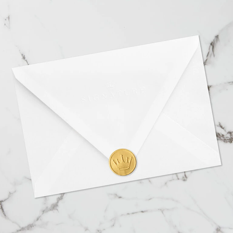 - Includes one card and one lined envelope with a Gold Crown seal. Envelope color may vary.