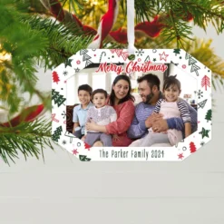 - Plastic personalized Christmas tree ornament is lead-free and measures 3.5″ W x 4″ H x 1.5″ D.