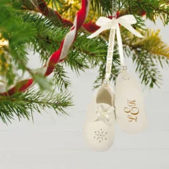 Baby’s First Christmas Monogram Booties Porcelain Personalized Ornament